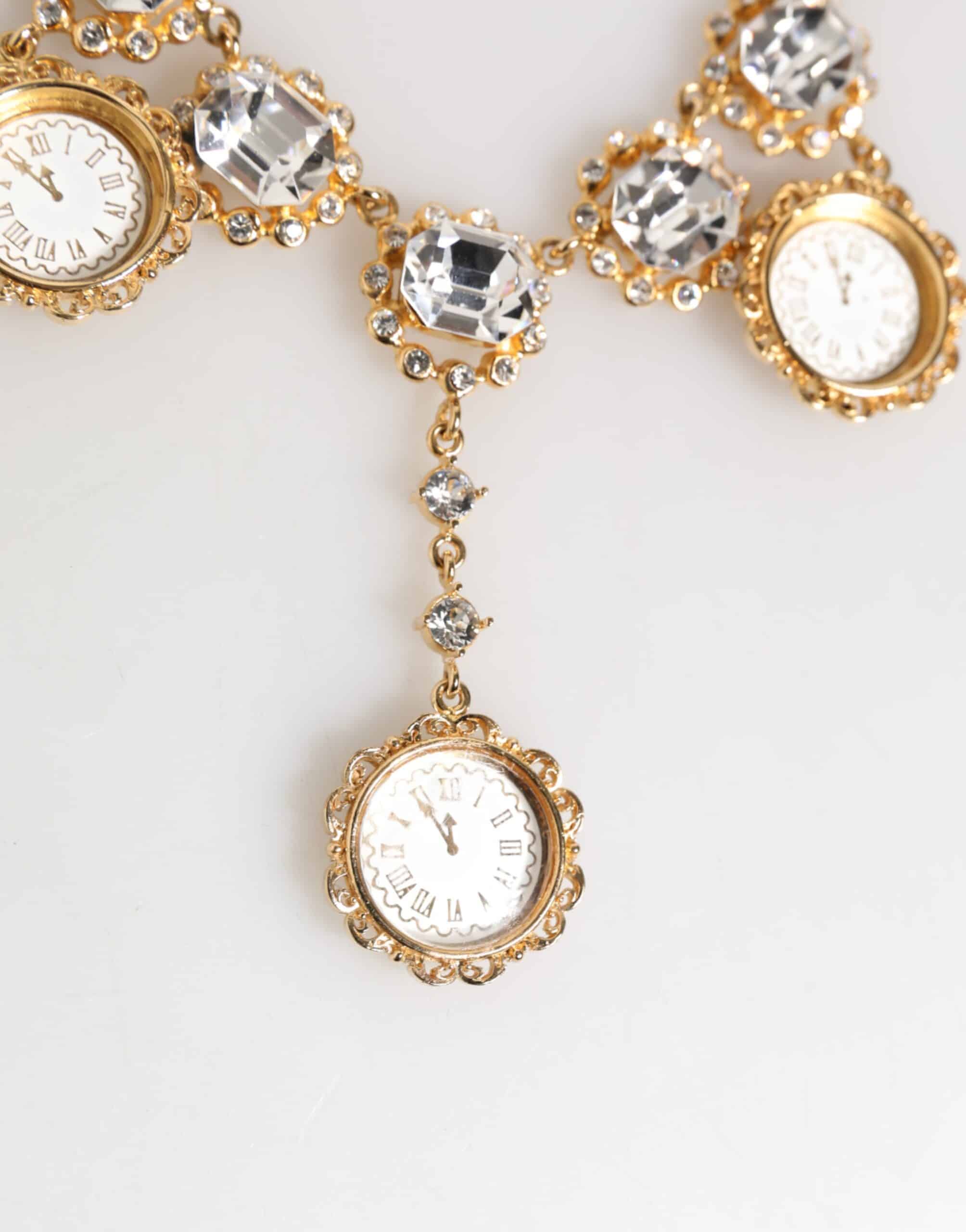Gorgeous brand new, 100% Authentic Dolce & Gabbana necklace. This striking statement piece features a gold-tone chain with crystal-embellished clock-face medallions and sparkling rhinestones. Designed in a vintage-inspired motif, it embodies Dolce & Gabbanaโs bold couture aesthetic.