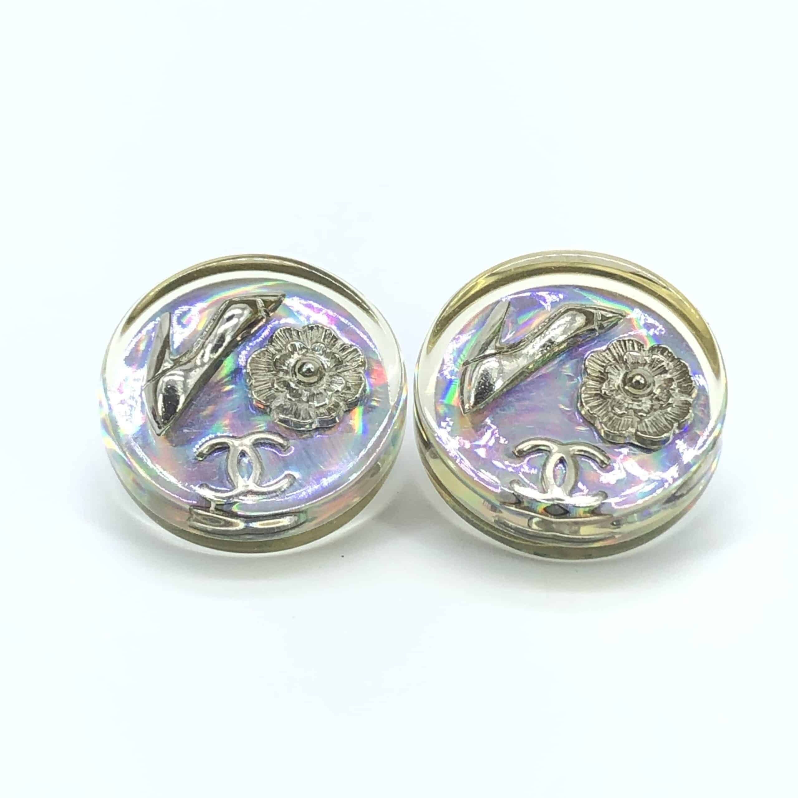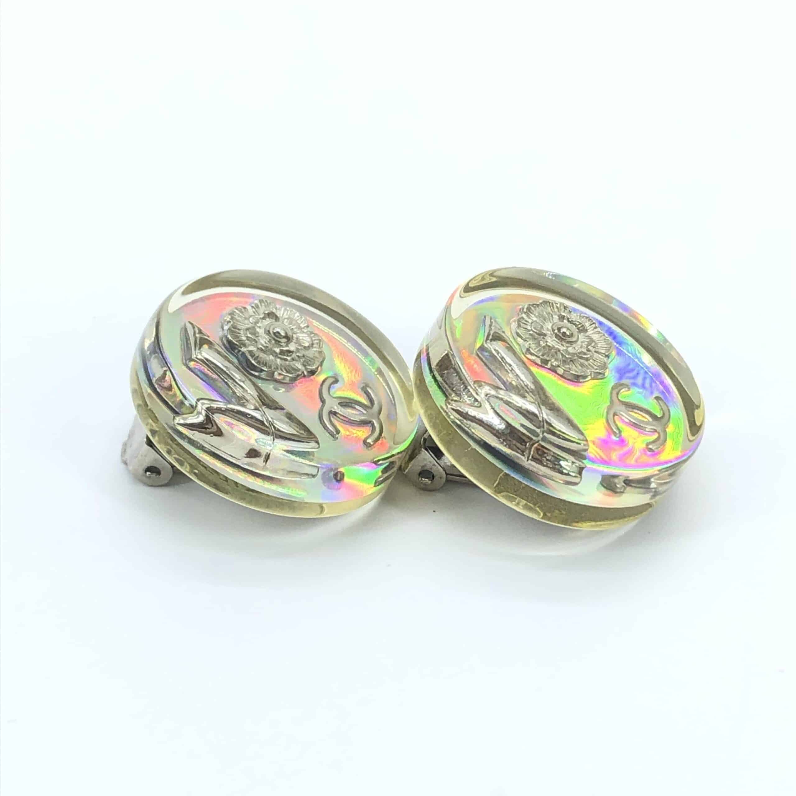 Presenting a captivating piece of fashion history: the Chanel Vintage Holographic Logo Clip-On Earrings. These exquisite earrings embody the timeless elegance and innovative spirit of the iconic Chanel brand. Crafted with meticulous attention to detail, they feature a mesmerizing holographic logo that captures the light with every movement, creating a dazzling display of color and sophistication.